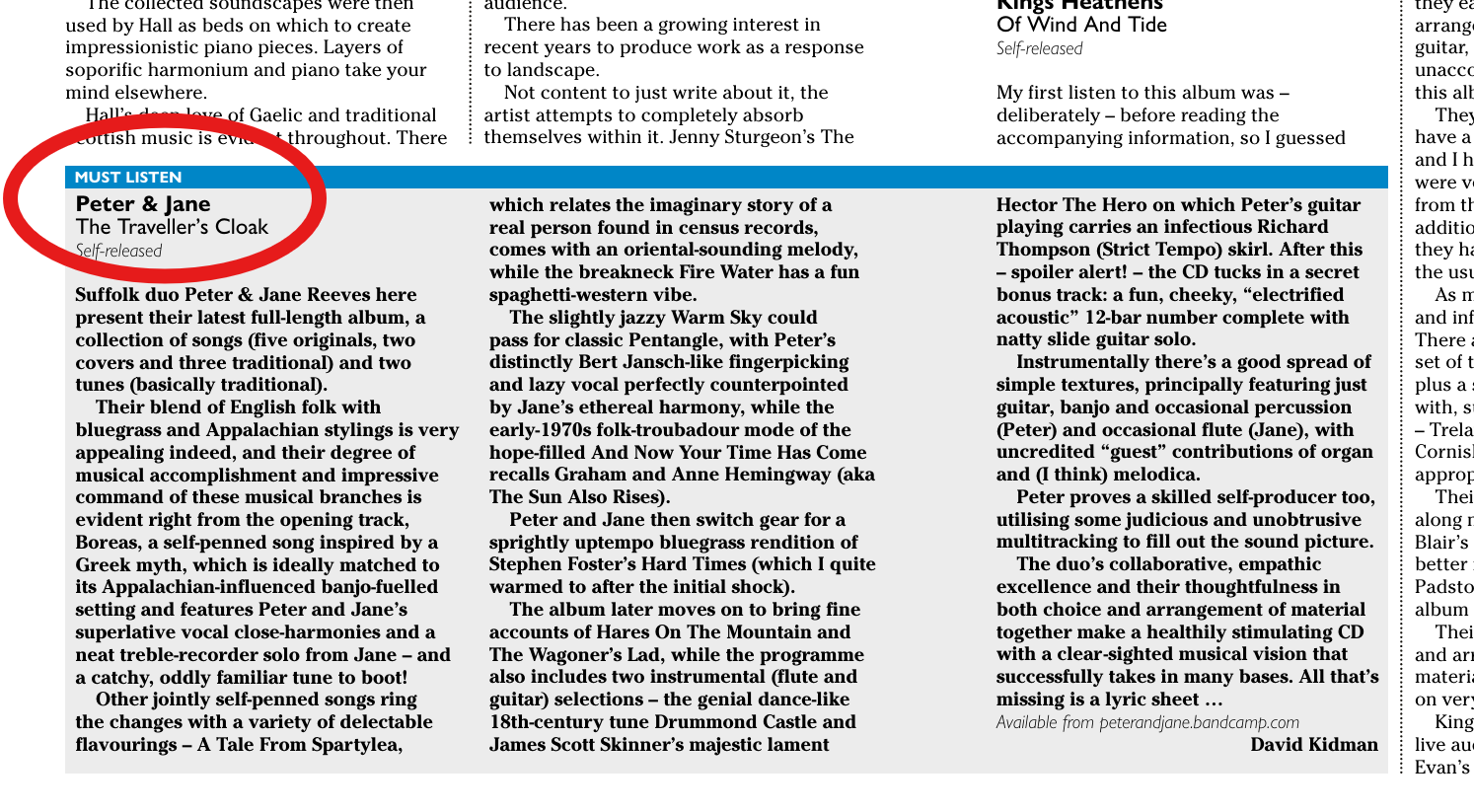 "...they have used their creative skills and strong vocals to weave together a collection of songs and tunes of the highest order."